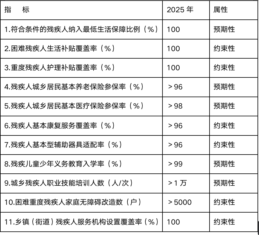 (二)发展目标。到2025年,残疾人脱贫攻坚成果巩固拓展,全生命周期服务优化提升,残疾人的美好生活需求得到更好满足,残疾人事业全面进步,为新时代现代化强市建设做出积极贡献。