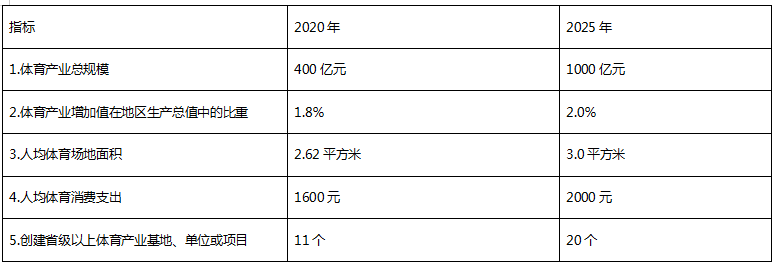 (三)发展目标。到2025年,基本建成结构合理、优势突出、特色鲜明、高质量发展的现代体育产业体系。