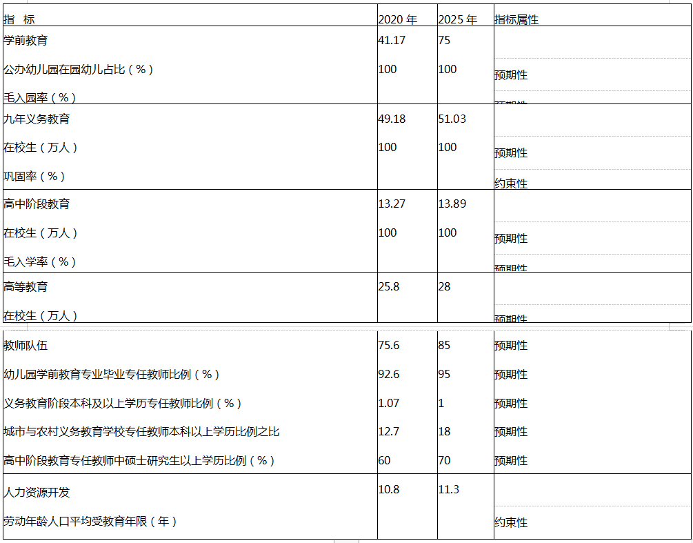 “十四五”时期全市教育事业发展规划指标