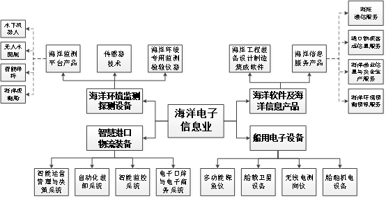 海洋电子信息产业,重点开发海洋环境监测设备、船用电子设备、港口智慧物流设备及海洋信息服务等产品,构建海洋电子信息产业链。