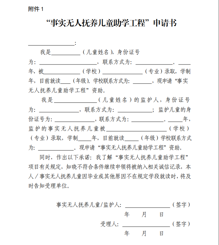 附件:1.“事实无人抚养儿童助学工程”申请书
