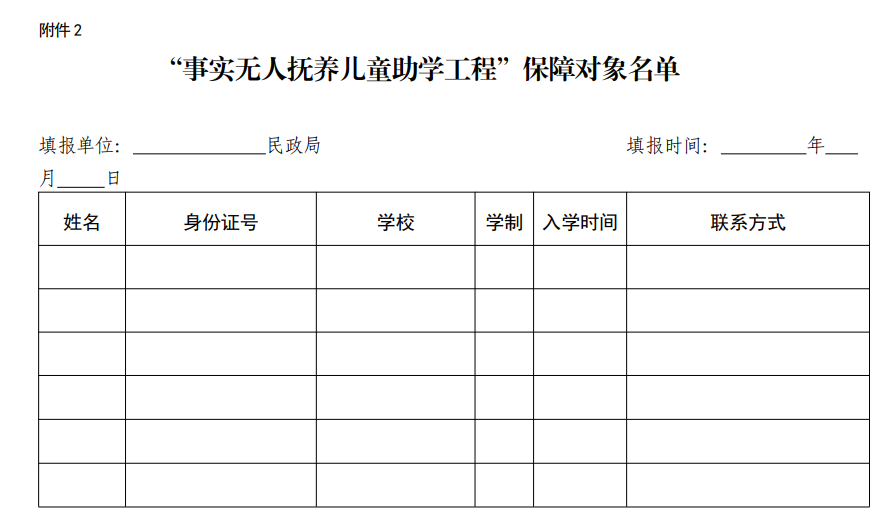 2.“事实无人抚养儿童助学工程”保障对象名单
