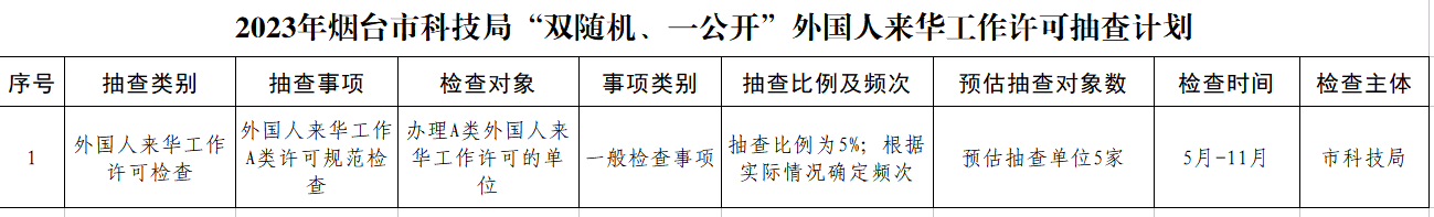2023年十大正规的赌网正版科技局“双随机、一公开”外国人来华工作许可抽查计划