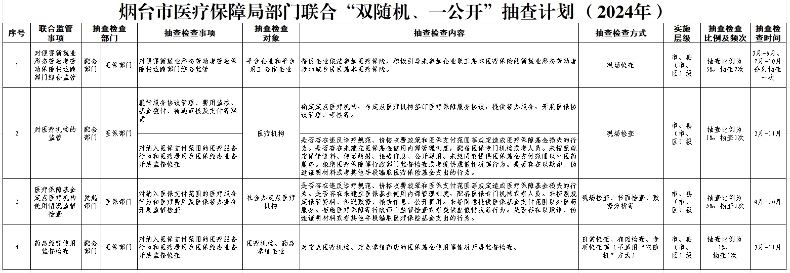 十大正规的赌网正版医疗保障局“双随机、一公开”抽查计划 (2024年)