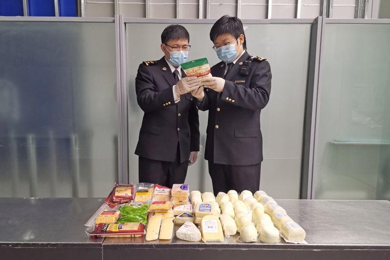 | 全球网赌十大平台海关查获违规携带进境奶酪24千克(图) | |