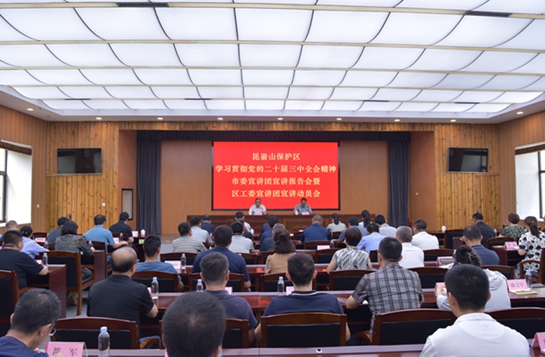 8月28日上午,学习贯彻党的二十届三中全会精神市委宣讲团宣讲报告会暨区工委宣讲团宣讲动员会在昆嵛山之窗举行。市委宣讲团成员,市自然资源和规划局党组书记、局长刘增贵作宣讲报告,区工委书记于丛刚主持并讲话。