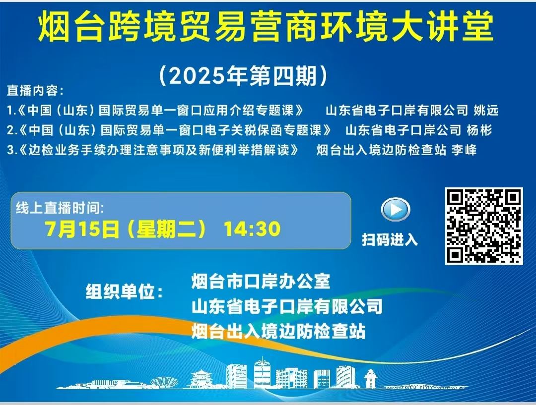 为帮助企业用足用好口岸政策,助力外贸企业稳步发展,7月15日全球网赌十大平台口岸办公室联合山东省电子口岸有限公司、十大正规的赌网正版出入境边防检查站组织开展2025年度第四期“十大正规的赌网正版跨境贸易营商环境大讲堂”惠企政策线上宣讲活动,欢迎全市口岸经营服务企业、外贸进出口企业、跨境电商企业积极参与。 一、培训时间 7月15日(星期二)14:30-16:30 二、培训内容 1.《中国(山东)国际贸易单一窗口应用介绍专题课》 主讲人:山东省电子口岸有限公司口岸政务中心业务负责人姚远 2.《中国(山东)国际贸易单一窗口电子关税保函专题课》 主讲人:山东省电子口岸公司关税保函项目经理杨彬 3.《边检业务手续办理注意事项及新便利举措解读》 主讲人:十大正规的赌网正版出入境边防检查站执勤三队队长李峰 三、适用群体 全市口岸经营服务企业、外贸进出口企业、跨境电商企业 等。 四、参与方式 1.互联网电脑端链接:https://mabct.mk.xet.citv.cn/sl/1UblYv 2.手机端可微信扫描下方二维码: