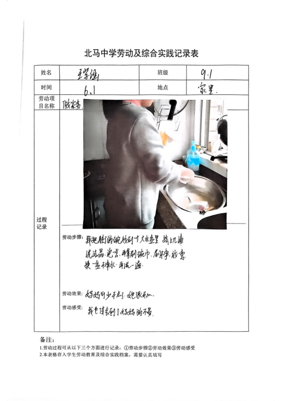 尊老爱幼,帮助父母照顾弟妹、孝敬老人。 | ||||||