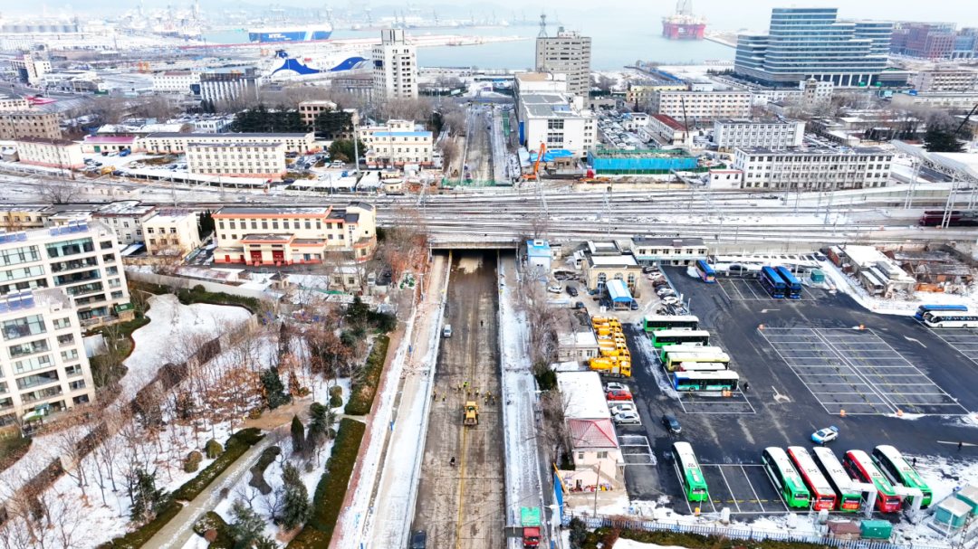 港湾南大道的老铁轨退休,横跨青年路的铁路框架桥拓宽。工程自去年6月5日启动以来,施工人员克服多重困难,最终圆满完成了主路施工任务。