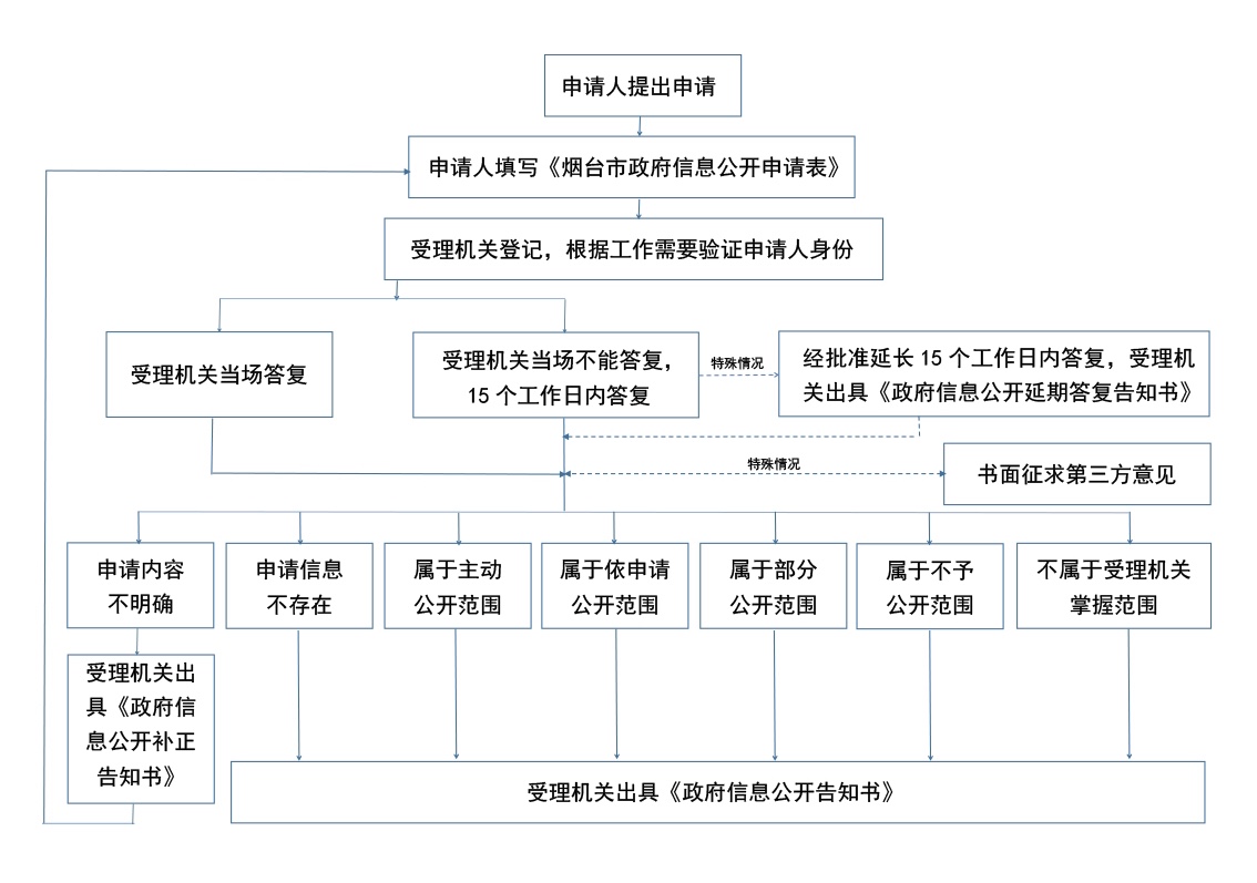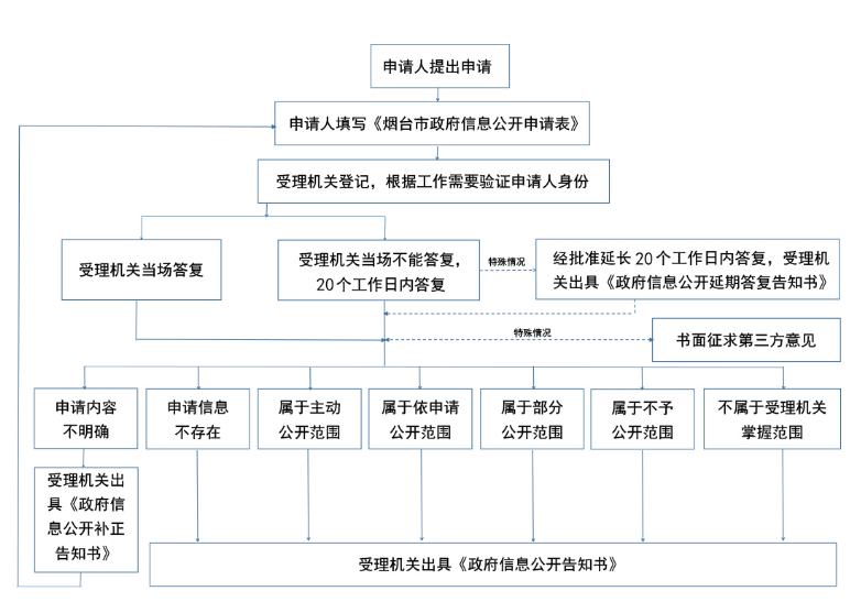 对申请人提出的政府信息公开申请,本机关将根据不同情况分别作出答复,详见本机关处理政府信息公开申请流程图(见附件2)。本机关办理政府信息公开申请时,能够当场答复的,将当场答复;不能当场答复的,自收到申请之日起20个工作日内予以答复;确需延长答复期限的,延长答复时间不超过20个工作日,并告知申请人。《条例》另有规定的,从其规定。本机关依申请提供信息时,根据掌握该信息的实际状态进行提供,不对信息进行加工、统计、研究、分析或者其他处理。